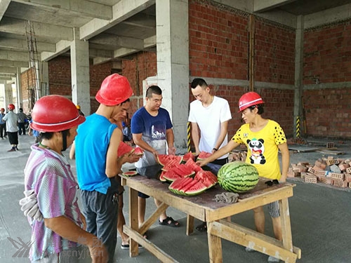 烈日炎炎送清涼,情意暖暖感人心。7月26日上午,營(yíng)山分公司副經(jīng)理金杰帶領(lǐng)辦公室相關(guān)工作人員代表營(yíng)山分公司來(lái)到營(yíng)山縣樞紐站建設(shè)工地看望慰問(wèn)一線工人,給在項(xiàng)目工地一線施工的工人們送去了風(fēng)油精、藿香正氣水、夏桑菊等防暑藥品,還有甘甜可口的大西瓜。金副經(jīng)理為項(xiàng)目管理人員和施工人員講解了防暑注意事項(xiàng),要求項(xiàng)目部一定要做好員工勞動(dòng)保護(hù)和安全文明施工工作。同時(shí),對(duì)工人們?yōu)榻ㄔO(shè)項(xiàng)目工程所付出的辛勤勞動(dòng)和做出的貢獻(xiàn)表示衷心感謝,提出“把有利健康、保證安全放在第一位”,并且叮囑相關(guān)負(fù)責(zé)人,高溫酷暑期間,要合理安排工作時(shí)間。此次“送清涼”活動(dòng)極大的鼓舞了戰(zhàn)斗在一線的施工人員的士氣,同時(shí)為項(xiàng)目建設(shè)安全生產(chǎn)提供了有效的保障。工人們表示不管天氣多么炎熱,也要克服困難按期完成施工任務(wù)。 (陳弘 何芳)