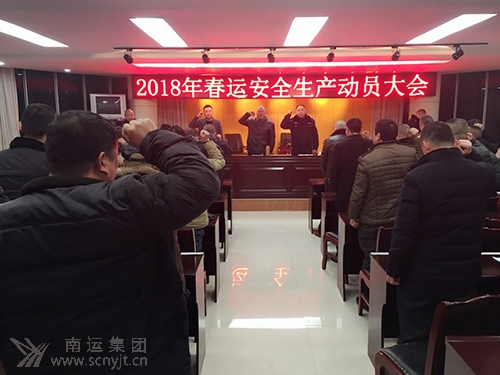 1月30日,西充分公司召開春運安全動員大會。西充分公司、鴻達公交、鴻運出租、西充客運東站全體職工、駕乘人員共計一百余人參加會議。西充縣交警大隊相關負責人應邀出席會議。會議由分管客運副經(jīng)理張剛主持。 會上傳達了省、市、縣交通運輸主管部門春運安全生產(chǎn)工作會議精神,并結合春運期間道路客運安全形勢、交通違法行為特點,進一步強調了道路運輸安全的重要性。同時,全體從業(yè)人員及駕駛員舉行了莊嚴的春運安全承諾宣誓。 分公司經(jīng)理馮波要求,各部門、各駕駛員要深刻認識春運工作的任務艱巨、責任重大,必須切實增強責任感、緊迫感,做到“思想上不松勁,管理上更堅決”,精心組織,周密部署,扎實工作,堅決遏制較大和重特大道路運輸事故的發(fā)生,確保全縣人民度過一個歡樂、祥和的春節(jié)。 (杜江龍)