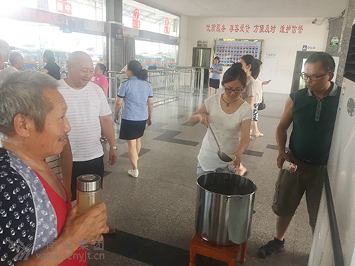 工作人員為駕駛員和乘客送綠豆湯