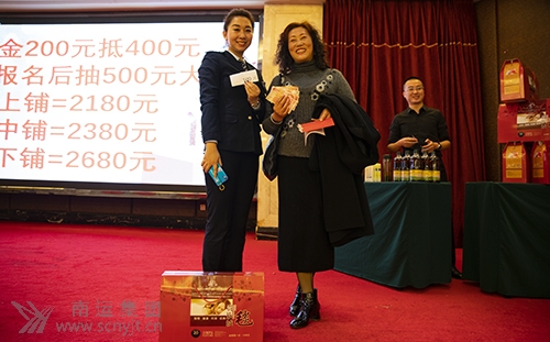 現(xiàn)場報名參加夕陽紅九日游的來賓抽獎得到500元現(xiàn)金