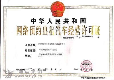 3月29日,我司投資入股的四川出門科技有限公司在南充市順利取得由市道路運(yùn)輸管理局發(fā)放的《網(wǎng)絡(luò)預(yù)約出租汽車經(jīng)營許可證》。