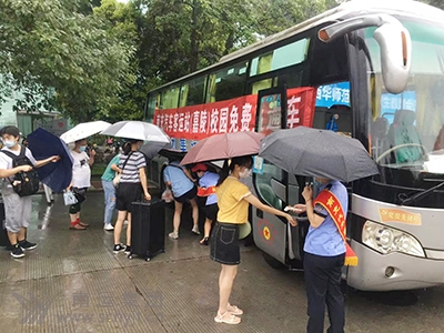 7月10日、11日兩天,車(chē)站組織四輛客車(chē)和八名站務(wù)人員前往西華師范大學(xué)接送同學(xué)們和老師。并在車(chē)身上懸掛醒目的“南充汽車(chē)客運(yùn)站校園免費(fèi)直通車(chē)”大幅標(biāo)語(yǔ)。八點(diǎn)鐘開(kāi)始同學(xué)們拖著行包,在服務(wù)人員的引導(dǎo)下,測(cè)體溫,戴口罩、掃碼后登上直通車(chē)。直接送到南充汽車(chē)客運(yùn)站內(nèi)轉(zhuǎn)乘相應(yīng)線路的車(chē)輛,實(shí)現(xiàn)了學(xué)生從校門(mén)到站門(mén)的“無(wú)縫對(duì)接零距離換乘”。今年暑假期間,車(chē)站共運(yùn)送師生達(dá)3000多人次,受到學(xué)校及廣大師生員工的好評(píng),促進(jìn)了旅客流量的回升。