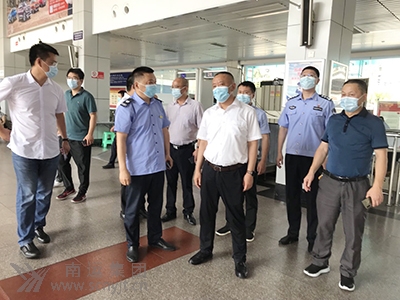 副市長(zhǎng)陳有波(右三)在南充汽車客運(yùn)站檢查防疫及安全工作。