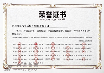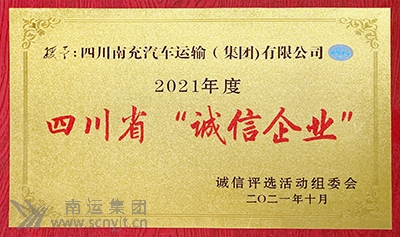 同創(chuàng)企業(yè)信用輝煌 共享南運(yùn)誠(chéng)信榮光 南運(yùn)集團(tuán)再次榮獲四川省“誠(chéng)信企業(yè)”榮譽(yù)稱(chēng)號(hào)