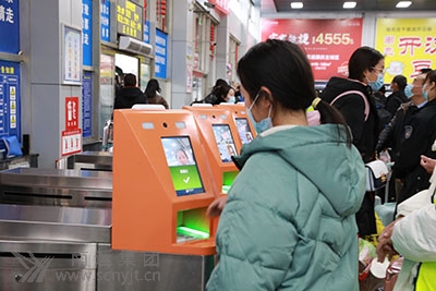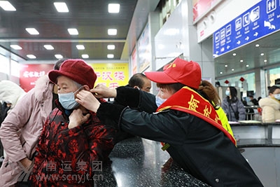 該車站持續(xù)優(yōu)化售票組織工作,積極拓展互聯(lián)網(wǎng)、小程序等售票渠道,以及手機支付等應用范圍,充分發(fā)揮10臺自動售(取)票機的作用,引導旅客使用智能自助購取車票,減少近距離接觸,切實便捷旅客購票乘車。同時開設(shè)“老弱病殘、孕、軍人購票優(yōu)先窗口”、“農(nóng)民工售票窗口”等3個人工售票窗口,延長開窗時間,調(diào)整窗口功能,確保旅客到站購票不排長隊。另還新增了1臺導購機,旅客在上面可自主查詢發(fā)班信息。志愿者們分別引導旅客在自助購(。┢睓C上自行購(取)票,所有旅客自覺保持一米間距,一切井然有序。有位七十歲的大爺徑直走到自助購(。┢睓C上,在志愿者的引導下,一分鐘不到就買到車票,他十分高興地說:“現(xiàn)在買票不用排隊了,直接在機器上購取票,十分快速方便!” 外面寒風冷冽,站內(nèi)暖意融融。頭戴小紅帽的“匡紅艷愛心班”站務人員在售票廳和候車廳不停地來回穿梭著,積極熱情地為旅客提供乘車咨詢、提拉行李、扶老攜幼、搬運行李、購票取票、提供熱水等便民志愿服務,將“情滿旅途”志愿服務融入旅客出行的每個細節(jié),切實保障每位旅客能舒心返崗,讓旅客們感受來自南運人的溫暖。