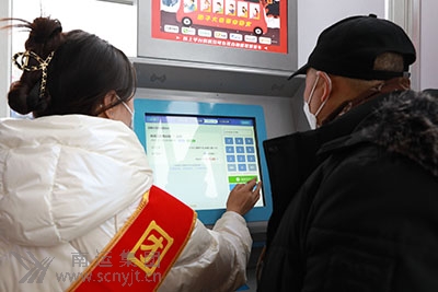 志愿者引導七十歲大爺在自動售(取)票機上購票