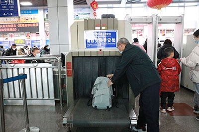 在進站安檢區(qū),“大包小包請過安檢”的小喇叭溫馨地提示著旅客。2臺行包安檢機不停地工作著,安保人員警惕地值守著,嚴格按照“逢包必檢、逢液必查、逢疑必問”原則開展安檢工作,所有乘客均須接受安檢人員手檢,所有包裹、行李均須經(jīng)過安檢機,所有液態(tài)物品均須接受安全檢驗,堅決杜絕漏檢現(xiàn)象,嚴防易燃易爆等危險品、管制刀具和國家明令禁止攜帶的違禁物品進站上車,堅決把危險品堵在站外和車下。