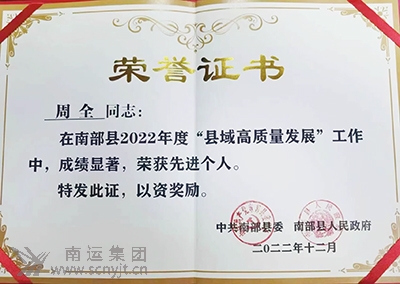 南部分公司黨總支書記、經(jīng)理周全榮獲 “南部縣2022年度‘縣域高質(zhì)量發(fā)展’工作先進個人”等稱號