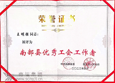南部分公司工會榮獲“南部縣工會工作先進集體”稱號
