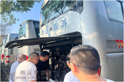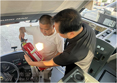 高速客運分公司安全生產(chǎn)第一責任人岳軍帶隊檢查車輛發(fā)動機及隨車滅火器