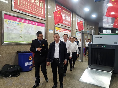 市委常委、政法委書記陳有波(左二)在南充市城北汽車客運(yùn)站檢查中秋國慶安全生產(chǎn)