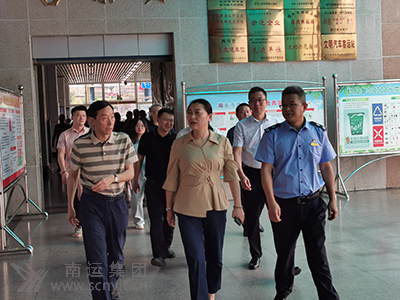 南充市交通運(yùn)輸局黨組書記、局長劉曉梅(中)到南充汽車客運(yùn)站檢查“國慶”安全生產(chǎn)工作。