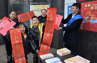 年味漸進,為營造春節(jié)氛圍,1月20日上午,南充市城北汽車客運站為務(wù)工人員返鄉(xiāng)回家過年的旅客送“福袋”。 據(jù)悉,“福袋”里有窗花、對聯(lián)、紅包,旅客在購票排隊領(lǐng)取車站派送的新春禮物“福袋”!皼]想到剛抵達城北汽車站,就收到驚喜!币晃粡膹V州返鄉(xiāng)的南充籍務(wù)工人員如是說。 目前正值外出務(wù)工人員返鄉(xiāng)的高峰期,該站特準備“福袋”作為禮物送給旅客,讓他們帶“福”回家過年。當天,該站免費送出“福袋”200多份,受到旅客點贊。 (城北汽車客運站 羅雪)