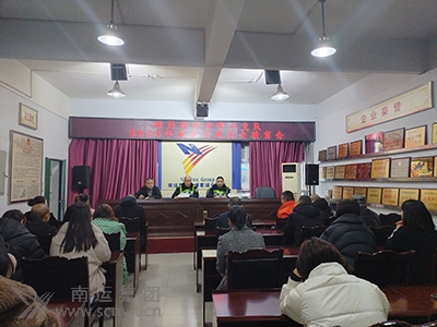 四川高速交警五支隊二大隊教導(dǎo)員趙國志(主席臺中)在高速客運分公司講春運安全