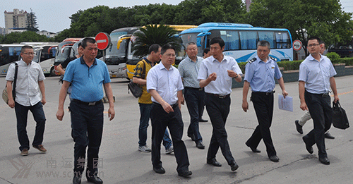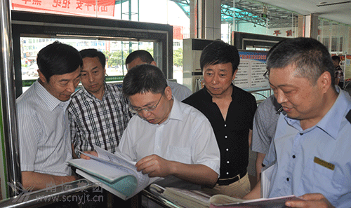 省運(yùn)管局局長(zhǎng)王波(左三)在南充汽車(chē)客運(yùn)站檢查汛期安全工作 省運(yùn)管局局長(zhǎng)王波在南充汽車(chē)客運(yùn)站查閱旅客行包安檢資料