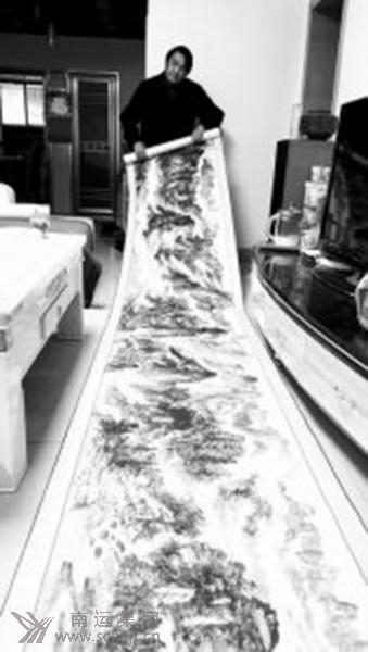 今年60歲的潘宇輝是南運集團一名資深運輸人,業(yè)余喜愛繪畫,一畫就堅持了41年。最近,繼加入南充雨霖書畫院后,他創(chuàng)作的4幅畫作入選嘉陵區(qū)2016年“元旦”迎春書畫攝影展。披一頭長發(fā),臉上掛著微笑的潘宇輝直言:如此堅持,純屬愛好。 8幅畫作見諸行業(yè)雜志 《潘宇輝中國畫欣賞》見諸2013年、2014年出版的《道路運輸》雜志畫頁中。分兩期刊出了潘宇輝的8幅畫作,標(biāo)題前頭還冠有“南運集團”字樣。 潘宇輝的中國畫被集中刊載后,引起業(yè)界關(guān)注!斑@人是誰,他的畫為何用兩個畫頁刊出?”“《道路運輸》創(chuàng)刊以來,如此版面刊載一名基層運輸人的畫作罕見!”一時間,潘宇輝在省內(nèi)交通系統(tǒng)一鳴驚人。 土生土長南充城的潘宇輝從小喜歡畫畫。讀高一時,他遇到一位伯樂———南充五中美術(shù)老師李君偉。當(dāng)時正值“文革”時期,李君偉在家偷偷作畫時,被潘宇輝瞧見。從此,兩人結(jié)為忘年交。 在李君偉的點撥下,潘宇輝步入中國畫的殿堂,并成為其晚年的6名弟子之一。 閉門繪出27米張家界長卷 2013年夏天,潘宇輝創(chuàng)作的中國畫《張家界》問世。他的朋友們沒想到,此幅畫作創(chuàng)作前,潘宇輝竟然沒有寫生的經(jīng)歷。換句話說,他本人連張家界都沒有去過。 “那年夏天,我從湖南衛(wèi)視中看了張家界的旅游片,被張家界的風(fēng)光吸引!迸擞钶x說,由于張家界的自然風(fēng)光頗具特色,那些山山相連的畫面令人過目不忘。接下來的日子里,他每天下班后,就把自己關(guān)在屋里,著手創(chuàng)作《張家界》中國畫。 一周時間,27米長的《張家界》創(chuàng)作成功。參加工作那年,潘宇輝的畫家夢破滅。在原南充地區(qū)運輸公司,他從工人干起,后來從事企業(yè)經(jīng)營管理。雖然如此,他的心中一直裝著中國畫的夢想。 幾十年來,除了工作,他唯一的愛好就是作畫。 潘宇輝家的陽臺盡頭,置有一張比寫字臺大一點的桌子,這就是他的畫桌。畫桌背后的窗臺上,堆放著被折疊的畫。“這些畫都沒有裱!迸擞钶x從中信手揀出一張展開,一幅完整的作品即展現(xiàn)眼前。 行家稱其畫作“令人震撼” 這么些年來,潘宇輝究竟創(chuàng)作出多少幅畫?他估算少說也有近2000幅。 與書畫家協(xié)會無緣,作品絕大多數(shù)未發(fā)表。潘宇輝給自己的創(chuàng)作定位為:愛好。成家20多年來,他每月花在作畫上的費用達數(shù)百元。好在妻子特別理解和支持他,為了不影響他深夜創(chuàng)作,退休后就干脆搬到老房子住。 “中國山水畫內(nèi)涵豐富,中國的哲學(xué),儒、道、佛家精神,都可以從中尋覓!迸擞钶x說,正是中國畫蘊含的豐富文化內(nèi)涵,才驅(qū)使他這么些年來堅守業(yè)余畫壇癡情不改。 2013年7月,一位朋友到他家做客,偶然發(fā)現(xiàn)他的畫作,興奮中十分驚訝,并自告奮勇介紹他加入雨霖書畫院。與畫院老師們見面那天,潘宇輝展開長卷《張家界》,老師們脫口而出:畫面太震撼了!院長何作霖拍著他的肩膀夸道:功力深厚! “其實這幅畫美中不足!迸擞钶x評價《張家界》:有些墨該收沒收攏。他直言,中國畫貴在大膽落筆,然而,大膽落筆易,細(xì)心收拾難。 說話間,他拿出自己創(chuàng)作的《黃河之水天上來》讓記者欣賞。這幅取材黃河壺口的中國畫,潘宇輝創(chuàng)作前同樣沒能到過現(xiàn)場,他的創(chuàng)作依舊來自電視畫面以及自己的想象。 (摘自《南充晚報》2016年1月31日 記者 李波 文/圖)