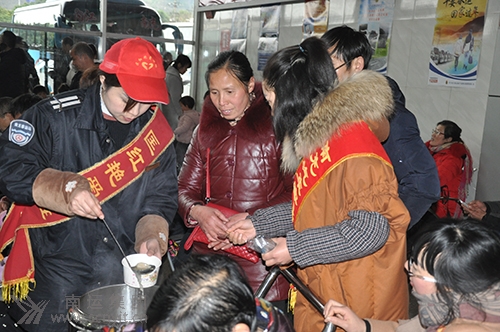 在中國(guó)人的傳統(tǒng)習(xí)俗中,餃子是春節(jié)除夕合家團(tuán)圓的喜慶食物,大年三十吃餃子,幾乎是南方人和北方人的共識(shí)。 2月21日,農(nóng)歷正月初六,轉(zhuǎn)眼間,春節(jié)假期即將結(jié)束,大量回家過(guò)節(jié)的人們,都在這一天,紛紛踏上返崗的旅程。南充汽車客運(yùn)站候車大廳、售票廳內(nèi)人流如織,有夫婦相伴而行的、有父子挎囊同走的、也有拖家?guī)Э谂e家遷徒的,為使旅客們?cè)谧叱稣鹃T、踏上離開家鄉(xiāng)行程的時(shí)刻,再次感受到年的味道,感受到合家團(tuán)圓的幸福味道。南充汽車客運(yùn)站黨支部堅(jiān)持以開展“情滿旅途”活動(dòng)為主題,組織“匡紅艷愛(ài)心班”、“小紅帽” 志愿者服務(wù)隊(duì),為旅客煮水餃、燒茶水。 當(dāng)天上午九點(diǎn),她們將剛買回的十斤 “思念”水餃分兩批煮好,先后送到候車大廳,端到旅客手中,受到旅客歡迎。“有需要吃水餃的同志,請(qǐng)接受我們的服務(wù),這是我們南充客運(yùn)站為大家免費(fèi)提供的,祝您們一路平安,新年好運(yùn),記住家鄉(xiāng)”!靶〖t帽”志愿者們一邊為旅客舀著餃子,一邊向旅客宣傳!鞍!謝謝你們啰,我們?nèi)胰硕汲渣c(diǎn),當(dāng)做在這里又團(tuán)了一個(gè)年”。一對(duì)帶著兩個(gè)小孩的夫婦動(dòng)情地說(shuō)!巴荆鷤冞@一家人是到哪兒去呀?”“我們到貴陽(yáng)去,家里老人無(wú)力照顧,我們只好把孩子一起帶過(guò)去。這一走,明年還不知道能不能回來(lái)喲,真是謝謝你們了”!安挥弥x,應(yīng)該的,我們每年都要這樣做,歡迎您們下次再來(lái)”,“家鄉(xiāng)的人真好,我下次回來(lái),爭(zhēng)取能夠再吃到你們煮的餃子”!耙欢ǎ 边@一問(wèn)一答,道出了路上行人的別樣心情,也表現(xiàn)了南充汽車客運(yùn)站溫馨服務(wù)的一個(gè)側(cè)面。 (李曉光 王洪)