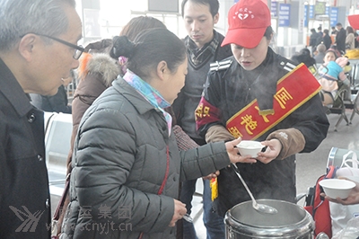 2月5日,農(nóng)歷正月大年初一。在南充汽車客運站的候車大廳里,三三兩兩的旅客進進出出,他們因種種原因,或未及時回到家鄉(xiāng),或早早踏上返程之路,等候著需要乘坐的班車。為讓旅客在站內(nèi)感受到濃厚的年味,匡紅艷愛心班的第二任班長胡燕,組織志愿者姐妹們,從清晨就開始忙碌起來,她們一邊往紅包里裝糖果,一邊燒水煮湯圓。上午8點30分,她們將一桶桶熱氣騰騰的湯圓送到候車大廳里。“各位旅客,大家好,今天是大年初一,首先向大家拜個年,祝大家新春快樂,歡迎您們來到南充汽車客運站,為我們增添了濃濃的節(jié)日氣氛,我們特地為大家制作了芝麻湯圓,并為首發(fā)班車的旅客同志們每人贈送糖果紅包一個。”“哎喲,還有這樣的事,我正好沒有吃上早飯,我要一碗。”“謝謝你們了!币晃粍倧膹V州趕到南充,準(zhǔn)備乘車返回儀隴縣金城鎮(zhèn)老家的旅客,來到送湯圓的小推車跟前說道!白D宦讽橈L(fēng),新年好運!卑嚅L胡燕回答著,順手將一個紅包和一碗盛好的湯圓先后送到了這位旅客手上。 “妹妹,給我們來兩碗,今天從家里出來得早,我和孫孫都沒有吃上飯!币晃淮髬寧еO孫說著走了過來!昂玫模髬,這兩碗是您們的。”胡燕端著兩碗湯圓送到跟前,志愿者楊琴拿過兩個湯匙說到:“來,老人家,您們慢慢吃,不夠又來添哈!薄爸x謝!謝謝你們,車站真好,我們沒在家里吃到湯圓,在你們車站吃到了,像在家里一樣。”大媽連聲道謝。 這時,有兩名分別乘車到內(nèi)江和巴中的旅客接過志愿者送來的湯圓后,先后拿出手機拍照,其中一位年輕人邊拍邊說道:“你們車站做得好,我還是第一次經(jīng)歷在車站吃過年湯圓,還看到給旅客發(fā)紅包,真是溫暖。”“我也拍兩張在網(wǎng)上發(fā)一發(fā)。”另一位旅客邊拍照邊說。短短一個小時,35斤湯圓連同30個紅包逐一送到了旅客手中,溫暖著旅客的心田。 (李曉光 王洪)