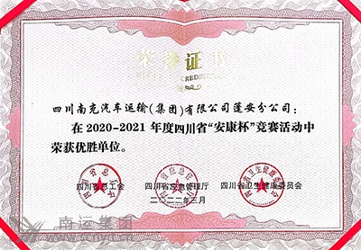 南運集團蓬安分公司榮獲 “四川省‘安康杯’競賽優(yōu)勝單位”稱號