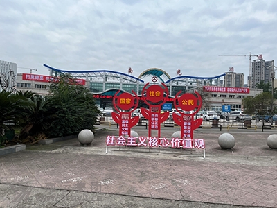 站前廣場設置的社會主義核心價值觀宣傳景觀