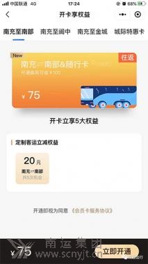 南運(yùn)集團(tuán)定制客運(yùn)南充至閬中、南充至金城、南充至南部線路會(huì)員卡重磅來襲,還有南運(yùn)出行平臺(tái)通用會(huì)員卡,讓你出行超省,更詳細(xì)的活動(dòng)規(guī)則,快隨小編一起往下看。 2021年的第一份出行特惠! 為給乘客出行提供優(yōu)惠福利,由南運(yùn)出行打造的定制客運(yùn)付費(fèi)會(huì)員產(chǎn)品“南充⇌南部隨行卡”“南充⇌閬中隨行卡”“南充⇌金城隨行卡”于1月1日正式上線! 什么是“隨行卡”?簡單來說,就是可以一次購買享多次出行優(yōu)惠。優(yōu)惠力度有多大?購卡后購票5折優(yōu)惠!可享5次!開卡最高可省150元! 活動(dòng)時(shí)間 2021年1月1日—2021年1月31日(31天) 數(shù)量有限,先到先得! 活動(dòng)規(guī)則 1.您選擇所需的定制客運(yùn)線路會(huì)員卡并完成支付后,系統(tǒng)將自動(dòng)派發(fā)卡中包含的所有優(yōu)惠券,您可使用優(yōu)惠券去抵扣應(yīng)付訂單金額; 2.優(yōu)惠券可使用的渠道為:南運(yùn)出行平臺(tái)微信小程序; 3.優(yōu)惠券自到賬后30天有效,每天限用1張優(yōu)惠券,請(qǐng)盡快使用; 4.定制客運(yùn)線路會(huì)員卡僅限南運(yùn)出行指定城際線路可用; 5.優(yōu)惠券僅可“會(huì)員卡購買本人”(支付活動(dòng)的登陸賬號(hào)中,常用乘客中的本人)使用,不可替別人購買或購買后將票轉(zhuǎn)售給他人。 2021年的第二份出行特惠! 由南運(yùn)出行打造的南運(yùn)暢行卡也將于1月1日正式上線!特別一說,南運(yùn)暢行卡適用于南運(yùn)出行平臺(tái)所有定制客運(yùn)線路(南部至閬中線路除外)! 活動(dòng)時(shí)間 2021年1月1日-2021年1月31日(31天) 數(shù)量有限,先到先得 活動(dòng)規(guī)則 1.您選擇所需的南運(yùn)暢行會(huì)員卡并完成支付后,系統(tǒng)將自動(dòng)派發(fā)卡中包含的所有優(yōu)惠券,您可使用優(yōu)惠券去抵扣應(yīng)付訂單金額; 2.優(yōu)惠券可使用的渠道為:南運(yùn)出行平臺(tái)微信小程序; 3.優(yōu)惠券自到賬后30天有效,每天限用1張優(yōu)惠券,請(qǐng)盡快使用; 4.南運(yùn)暢行卡適用于南運(yùn)出行平臺(tái)所有定制客運(yùn)線路(南部至閬中線路除外)。 5.優(yōu)惠券僅可“會(huì)員卡購買本人”(支付活動(dòng)的登陸賬號(hào)中,常用乘客中的本人)使用,不可替別人購買或購買后將票轉(zhuǎn)售給他人。 活動(dòng)流程 1.識(shí)別下方二維碼進(jìn)入“南運(yùn)出行”小程序
